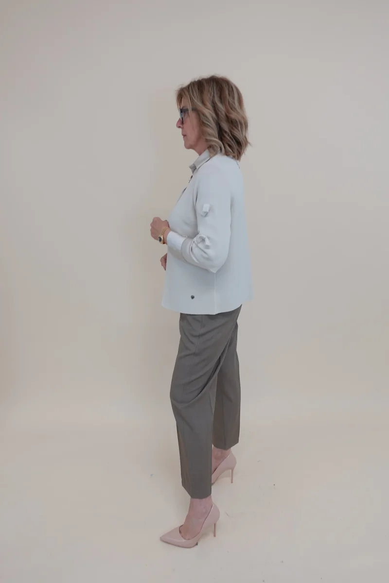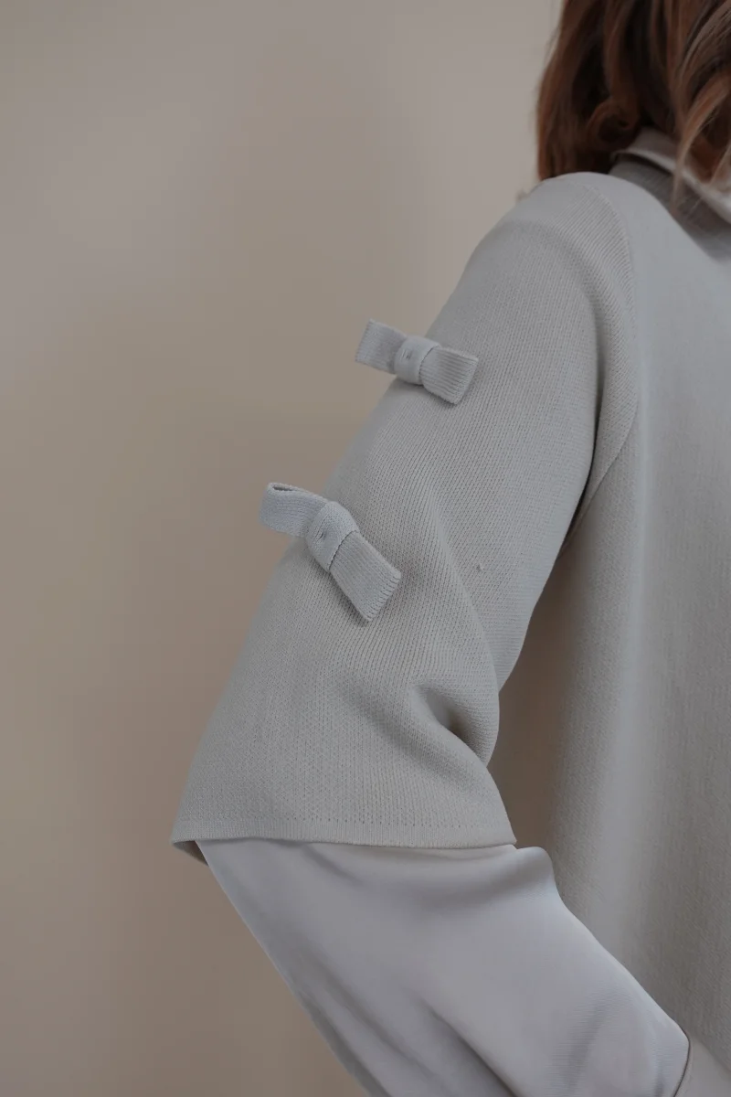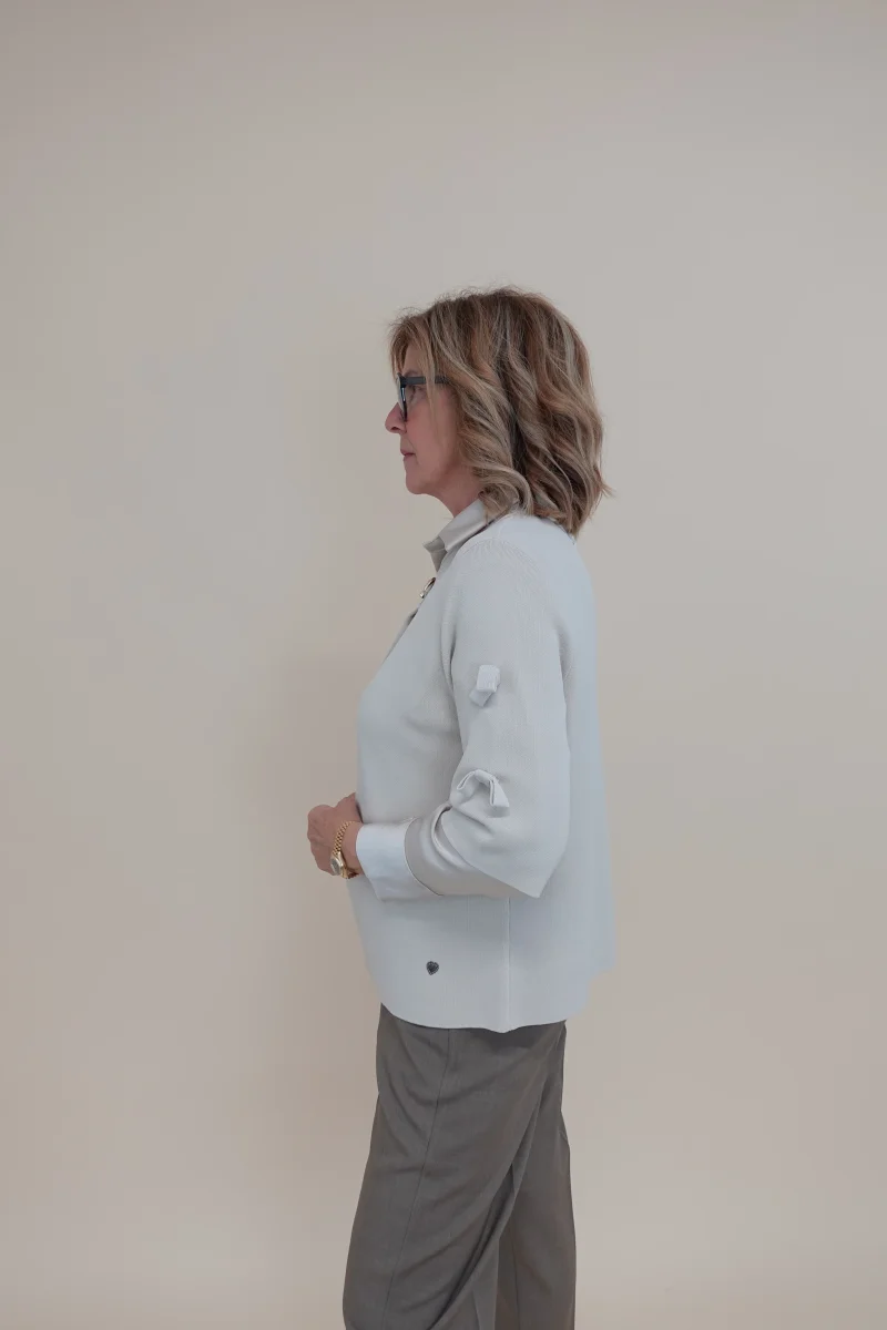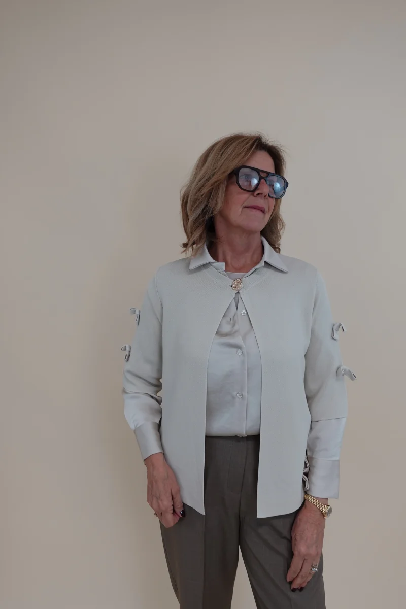 Cardigan con bottone frontale, fiocchettini sulle maniche