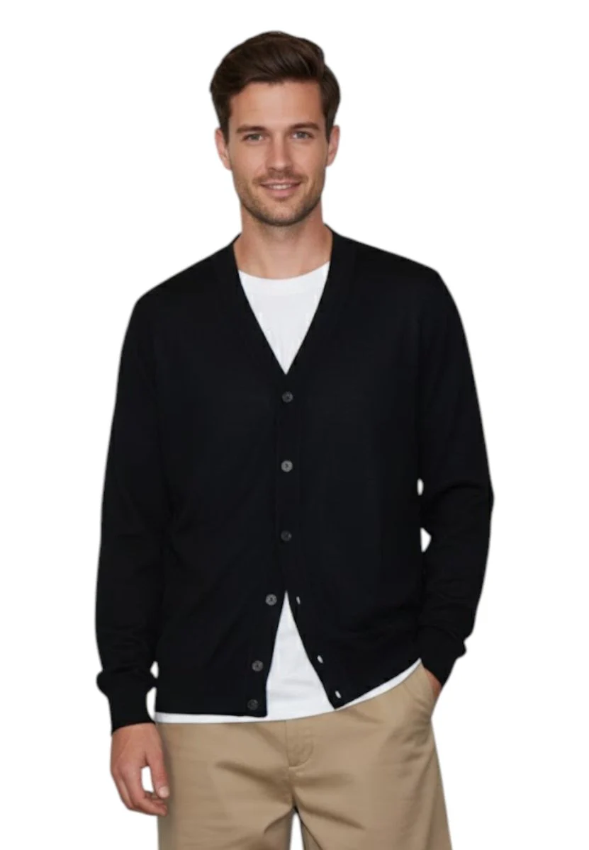Il cardigan presenta un design classico con chiusura a bottoni, ideale per sovrapporsi a una camicia o a una t-shirt per un look casual ma raffinato. Il taglio sobrio consente di abbinarlo facilmente a un paio di jeans o pantaloni formali, adattandosi a qualsiasi stile.