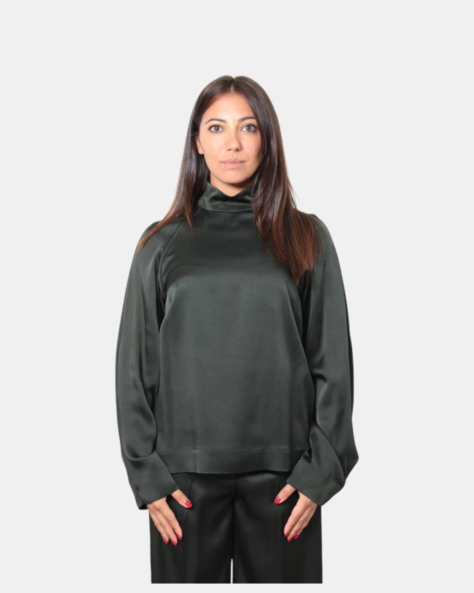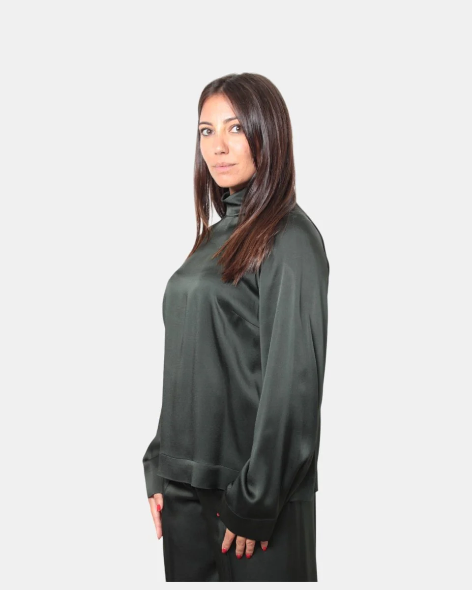 Dettaglio: Il design sobrio e il collo alto aggiungono un elemento di eleganza al capo. Le finiture sono curate nei minimi dettagli, mentre il tessuto di alta qualità assicura una vestibilità che si adatta bene e
