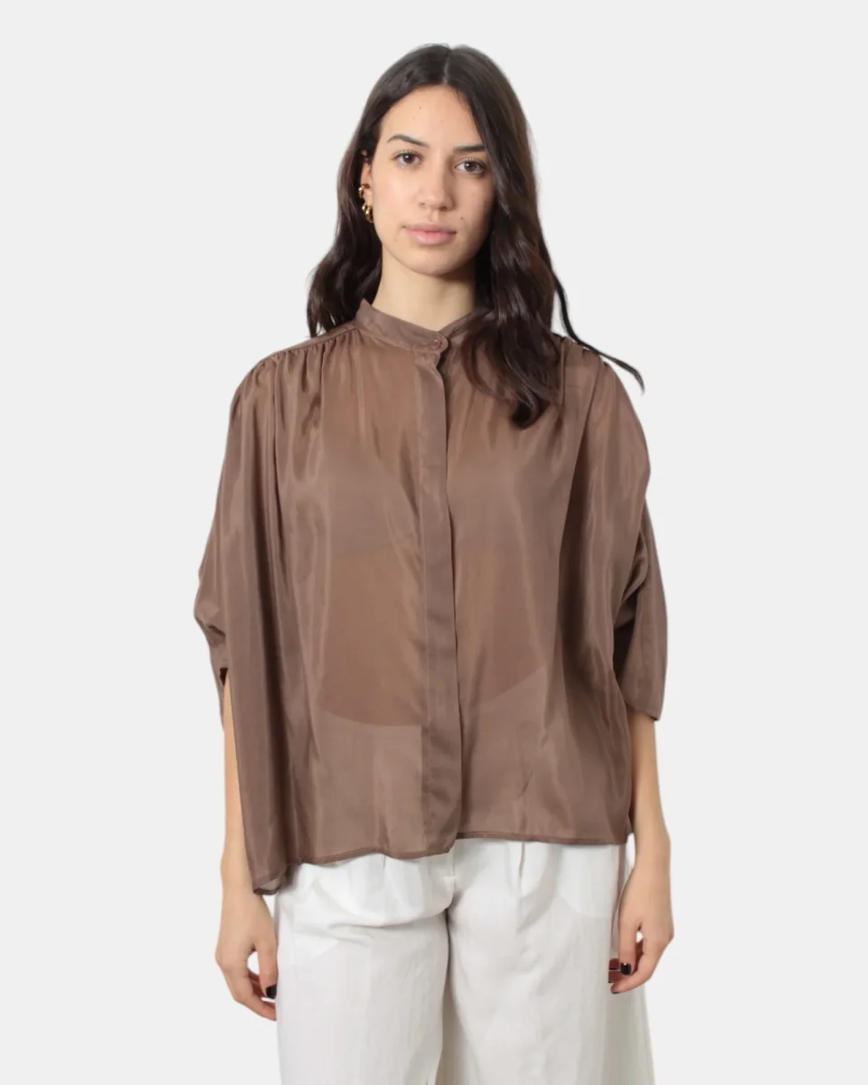 La casacca di Solotre presenta chiusura a sei bottoni, frangette sul retro, dalla mano fresca dovuta alla sua composizione in 70% cotone e 30% seta. Si consiglia lavaggio a mano. La modella è alta 1,68 m e indossa una 40