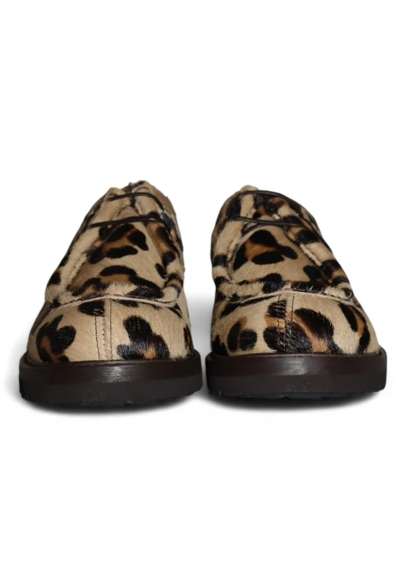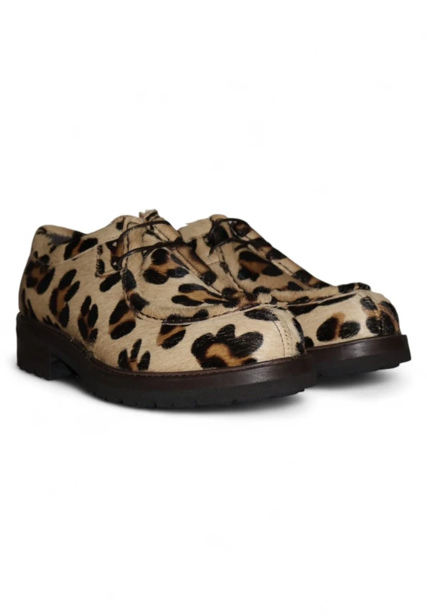 Una stringata che non passa inosservata: realizzata in cavallino con fantasia leopardata e lavorazione a spiga, questa scarpa unisce grinta e raffinatezza. Il fondo in gomma carrarmato completa il design con un tocco urban e deciso, garantendo comfort e aderenza. Ideale per chi ama distinguersi con stile e personalità.