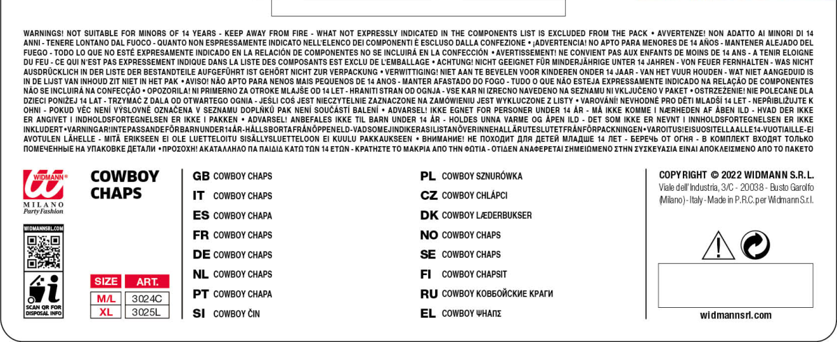 Un travestimento che comprende unicamente un copri-pantalone in finta pelle (il resto non è incluso).Si chiude grazie ad una cintura, facile da indossare. Un costume perfetto per incarnare un cowboy durante una serata a tema