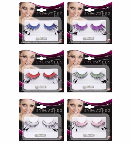 CIGLIA NERE ALLA BASE E COLORATE IN CIMA CON 3 PIUME SUI LATI con colla in tubetto – ass. in 6 colorispecificare colore durante l ordine