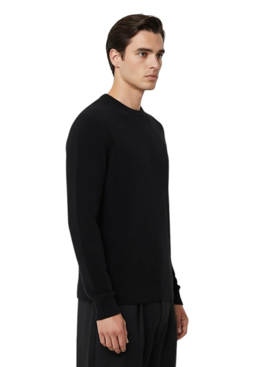 Il design è definito con sobrietà ed eleganza: lo scollo e le ampie lavorazioni a coste inglesi che rifiniscono polsi e fondo conferiscono struttura e definizione alla silhouette.