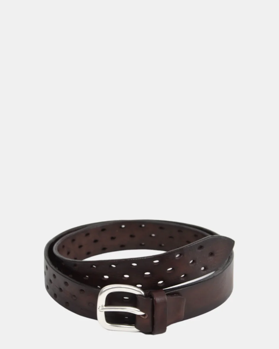 La cintura di Alberto Luti presenta:– DETTAGLI: realizzata in pelle e fibbia in metallo color argento. Altezza: 3 cm. La misura della cintura indica la distanza tra il buco centrale e la fine della cinghia– COMPOSIZIONE: pelle