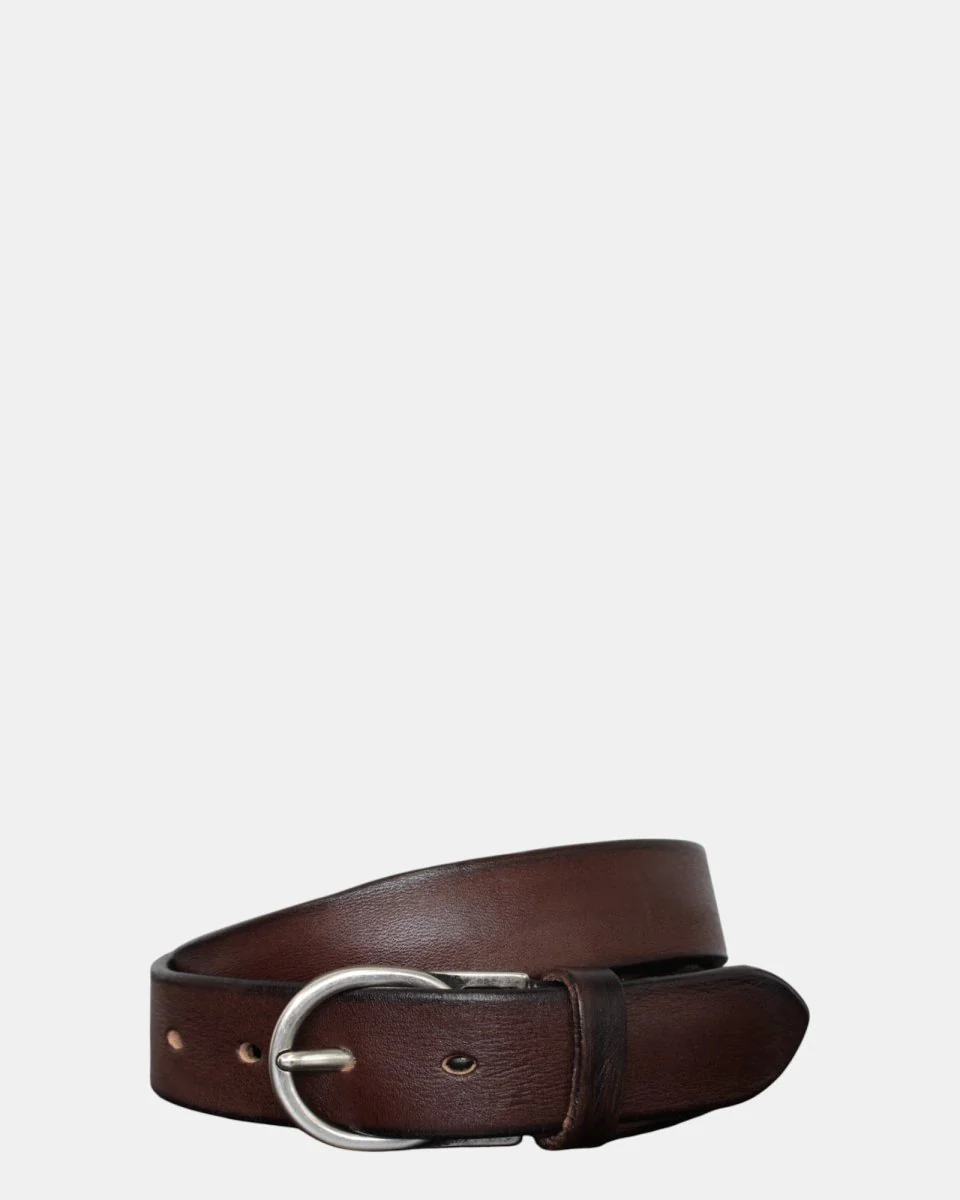 La cintura di Alberto Luti presenta composizione in pelle, chiusura con fibbietta argentata e fantasia monocolore