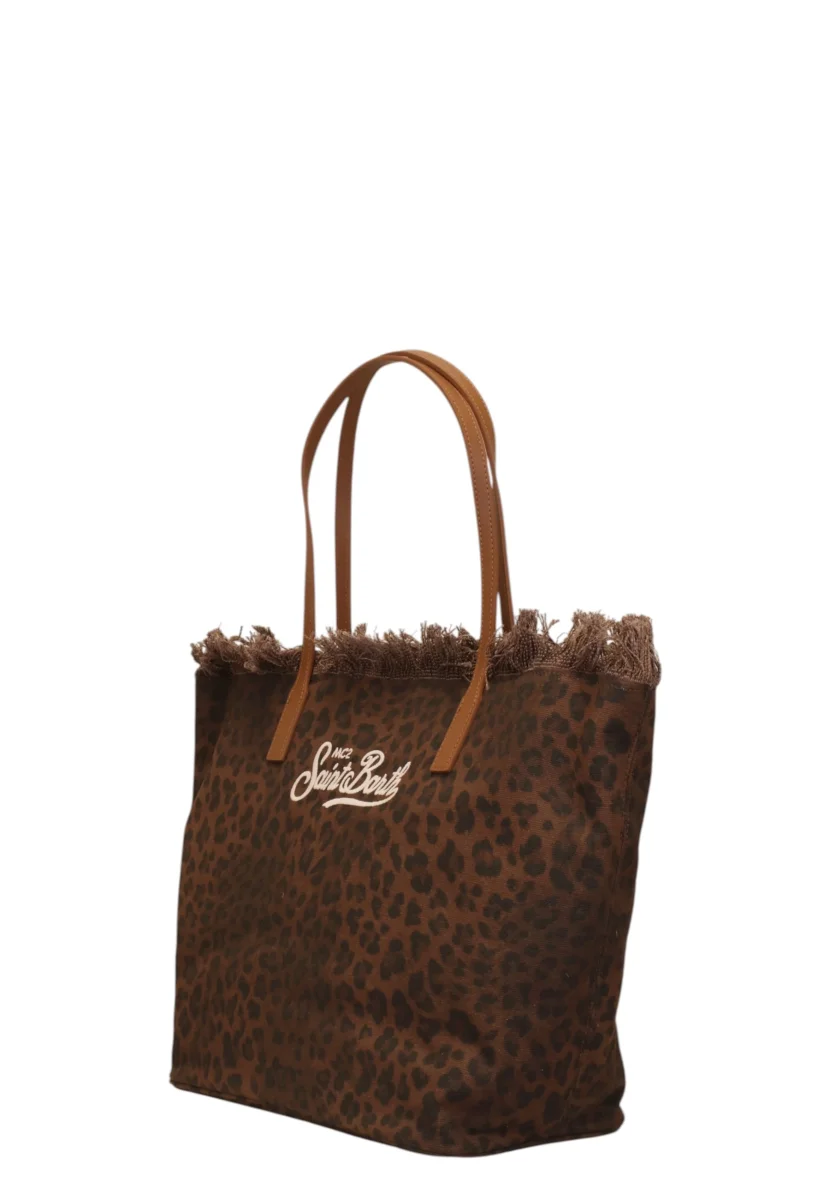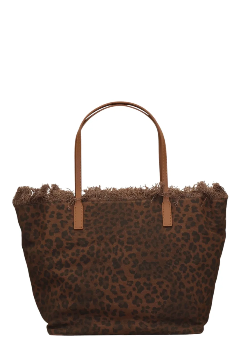La City Bag Fringe firmata MC2 Saint Barth è una borsa da donna dallo stile contemporaneo e grintoso, perfetta per completare i look quotidiani con un tocco di carattere. Realizzata in 95% cotone e 5% pelle, unisce praticità e qualità dei materiali, mantenendo una struttura resistente ma leggera. La stampa leopardata all-over dona personalità e rende questa borsa un accessorio distintivo, ideale per chi ama uno stile dinamico e alla moda.