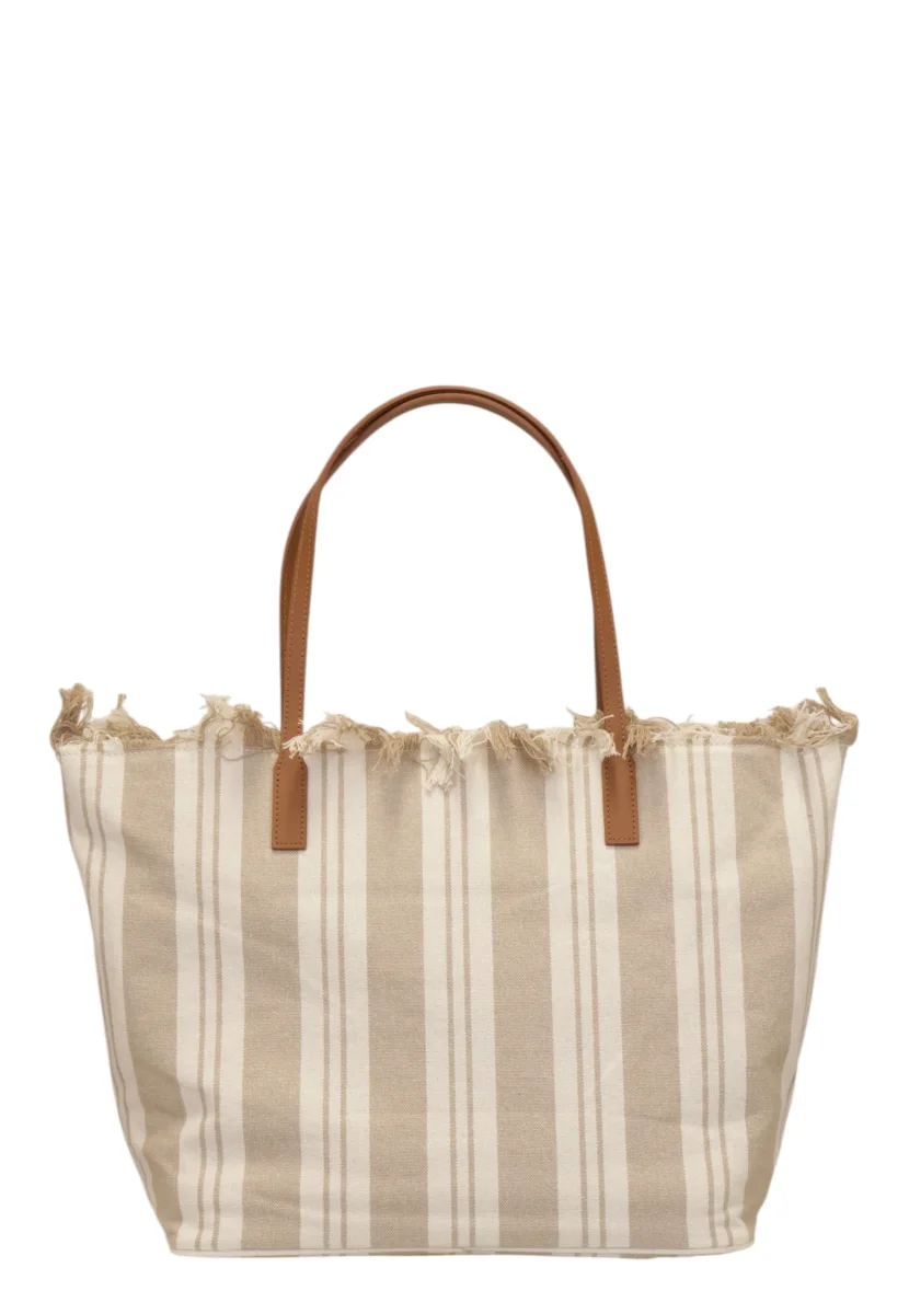 Dotata di doppi manici superiori e doppie strisce decorative, questa city bag è comoda da portare a mano e ideale per accompagnarti durante lo shopping, il lavoro o il tempo libero. La chiusura superiore con zip garantisce sicurezza agli oggetti personali, mentre la tasca interna portaoggetti permette di organizzare al meglio gli accessori più piccoli.