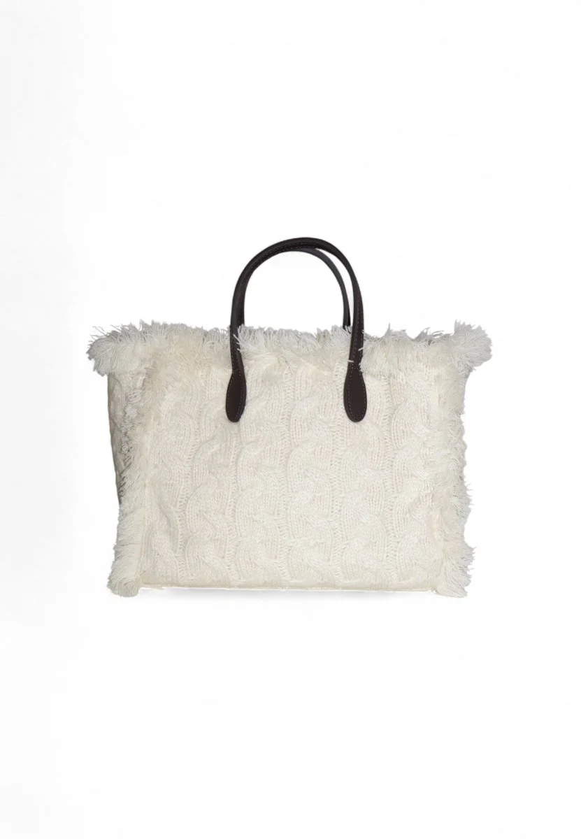 Proposta in tinta unita bianco, questa borsa unisce versatilità e personalità. È dotata di manici in faux suede per un tocco sofisticato, oltre a una tracolla regolabile e removibile per essere indossata come più preferisci. All’interno, una tasca funzionale ti aiuta a organizzare gli essenziali quotidiani.