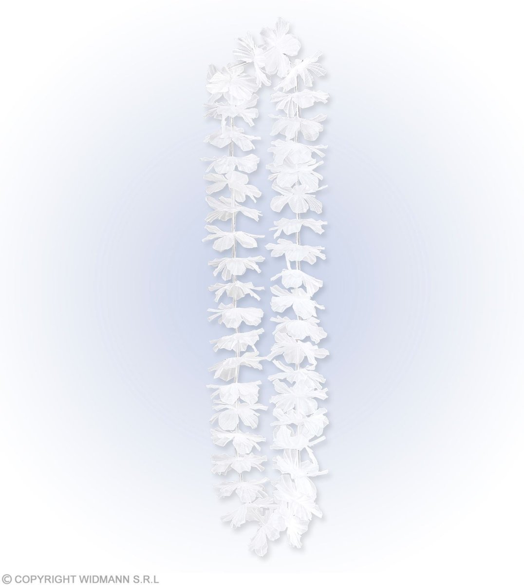 Questa collana di fiori hawaiani di benvenuto è bianca e misura circa 50 cm di lunghezza. Ogni fiore, invece, misura 6 cm.