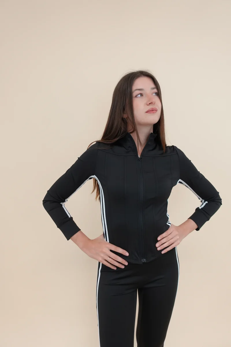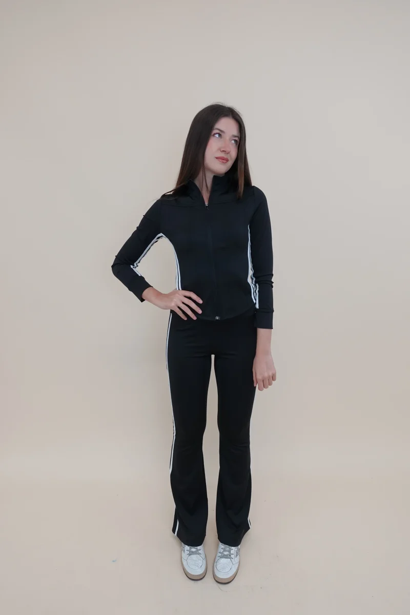 felpa con zip + pantalone a zampa elasticizzato