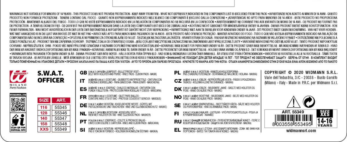 WIDMANN AGENTE S.W.A.T. La confezione comprende: costume, giubbotto antiproiettile, cintura con fondina e borsellino, para ginocchia. Sono esclusi gli accessori non menzionati.Abito,Travestimento,Carnevale,Comico,Halloween,cosplay