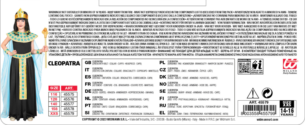 - Il costume è disponibile per bambini nella taglia 164 cm