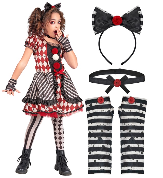 - Costume per bambini Arlecchino: dettagliato Clown Bambola vestito per ragazze – adatto per Halloween, traslochi di carnevale o feste a tema spaventose