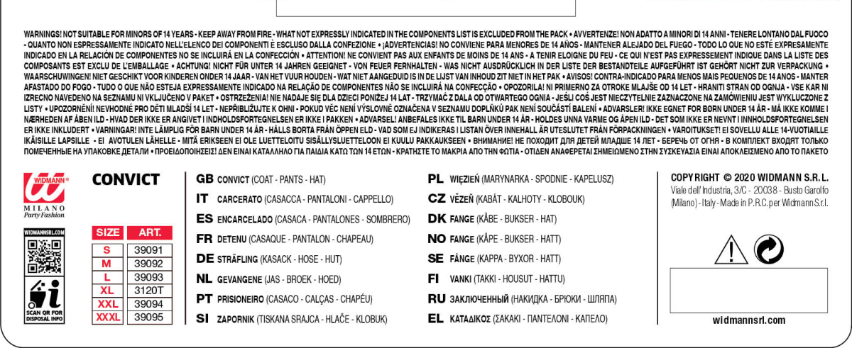 Costume CARCERATO . La confezione comprende: casacca, pantaloni, cappello . Sono esclusi gli altri accessoriAbito,Travestimento,Carnevale,Comico,Halloween,cosplay