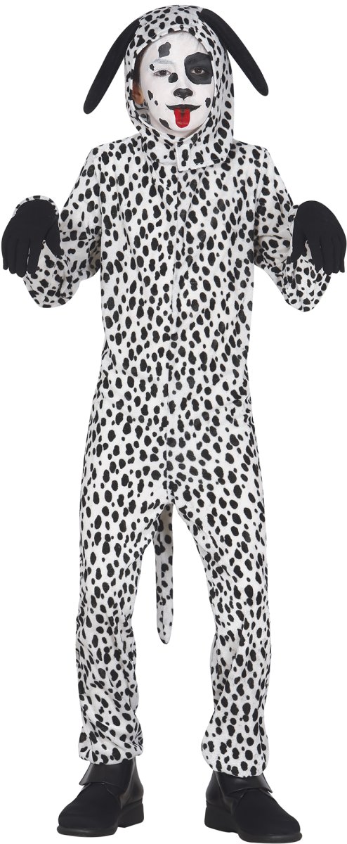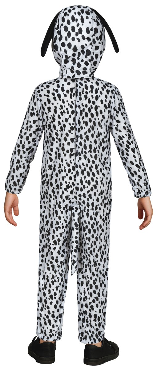 Costume da cagnolino dalmata in diverse taglie, per bambino.Include cappuccio, tuta, coda.Finiture di velluto.Questo costume è perfetto per il travestimento da dalmata de “La carica dei 101”.Completa questo costume con gli articoli della nostra serie di accessori da trucco.