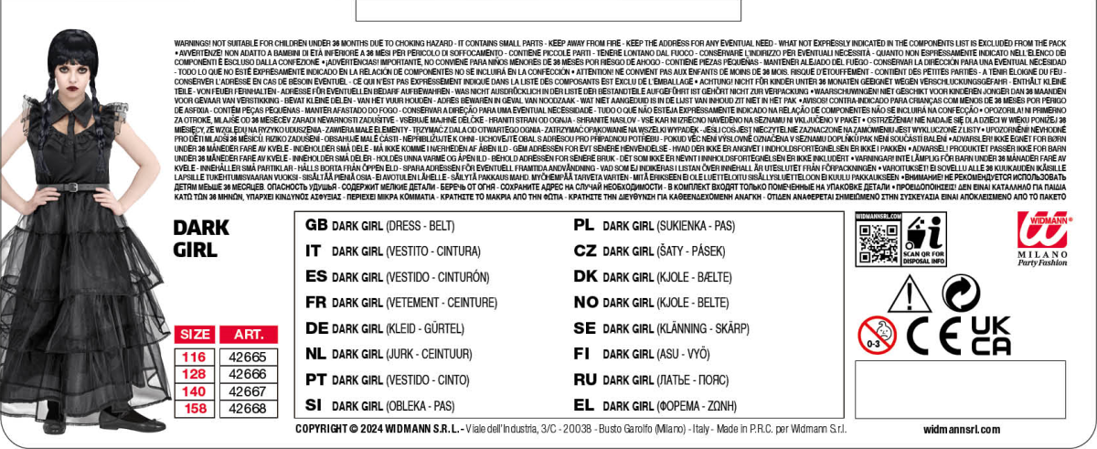 - Il costume è disponibile per bambini nella taglia 116 cm – questa taglia corrisponde a bambini di circa 4-5 anni