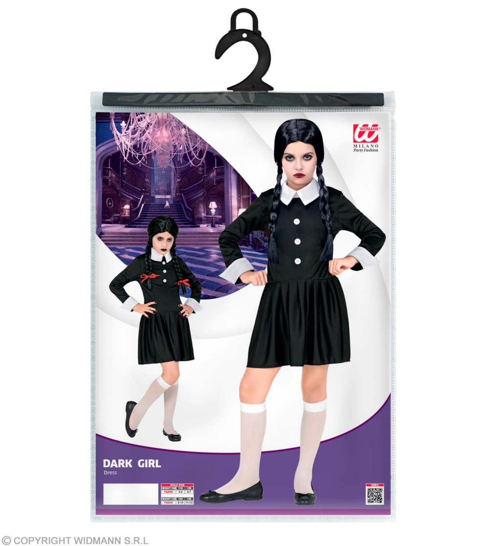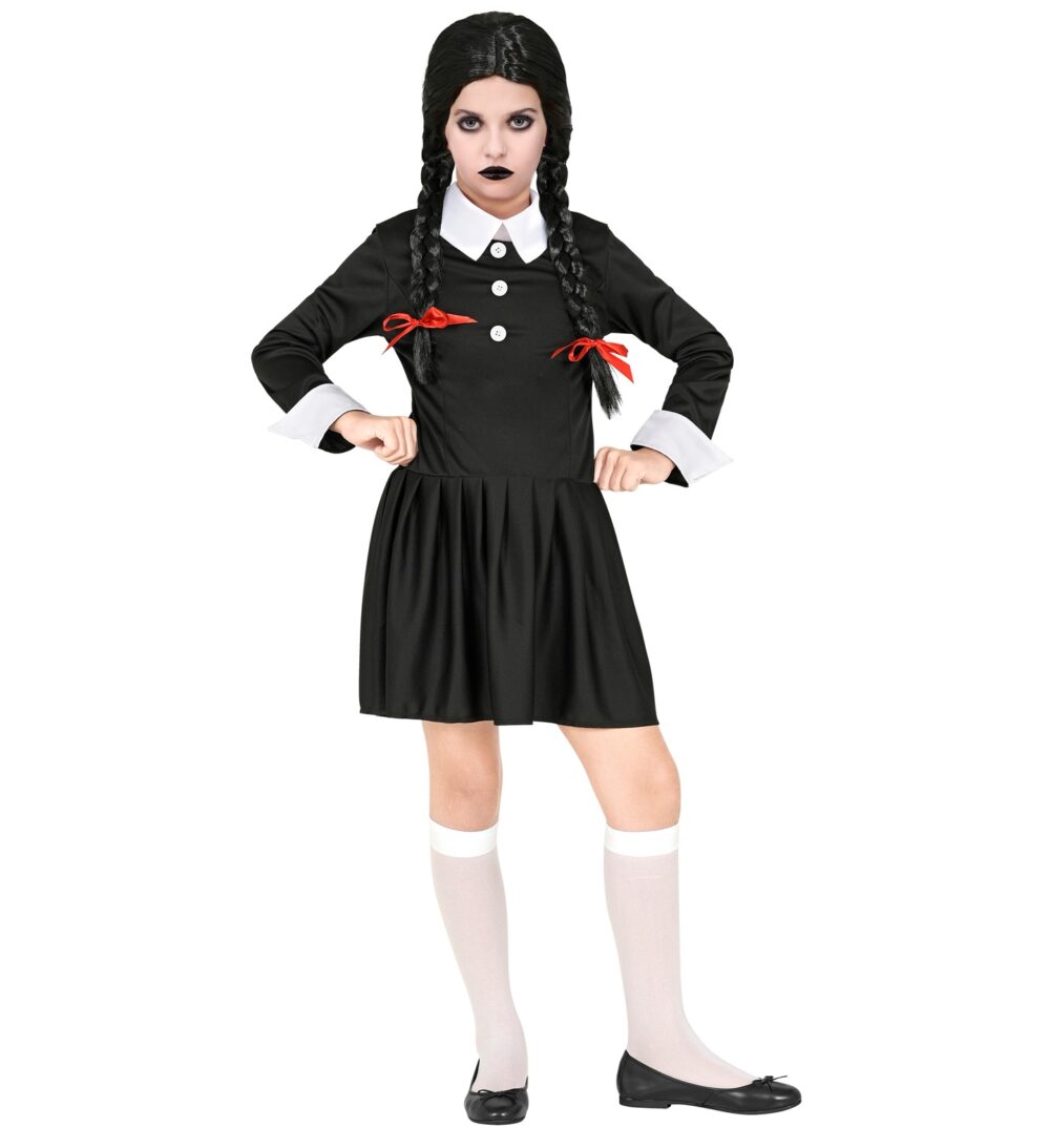 Questo fantastico travestimento da Scolaretta Gotica e composto da un vestito corto dicolore nero a maniche lunghe. Ha tre bottoni e un colletto bianco.