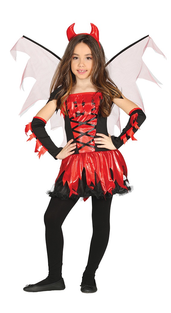 Costume Diavolessa Demone .La confezione comprende: vestito con manicotti, ali e cerchietto con corna . Sono esclusi gli altri accessoriAbito,Travestimento,Carnevale,Comico,Halloween,cosplay