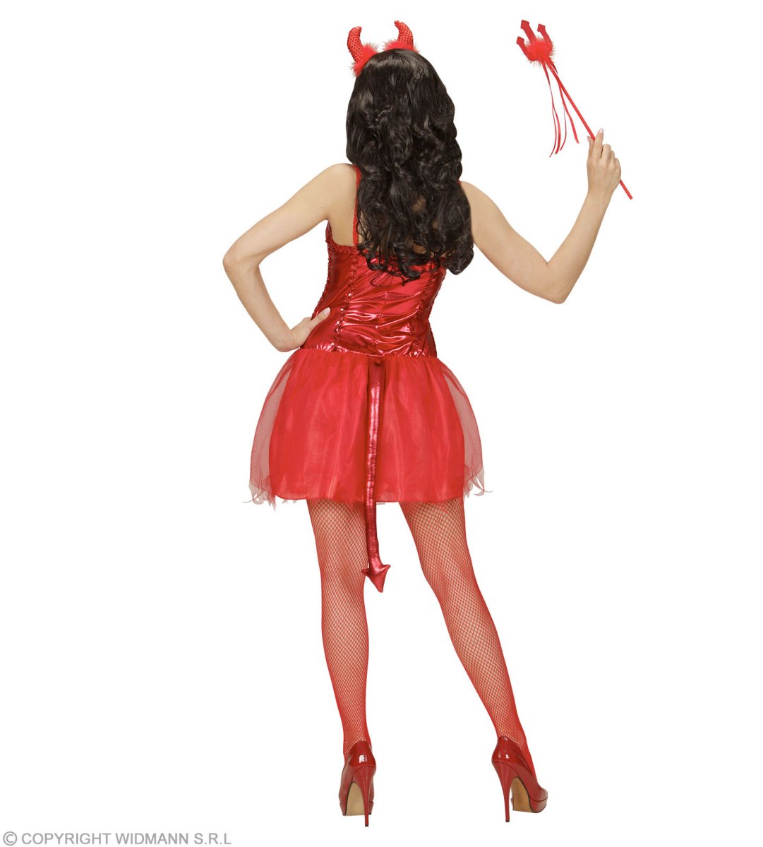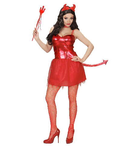 COSTUME DIAVOLESSA . La confezione comprende: vestito con coda, girocollo, corna, mini tridente . Sono esclusi gli accessori non menzionati. Abito,Travestimento,Carnevale,Comico,Halloween