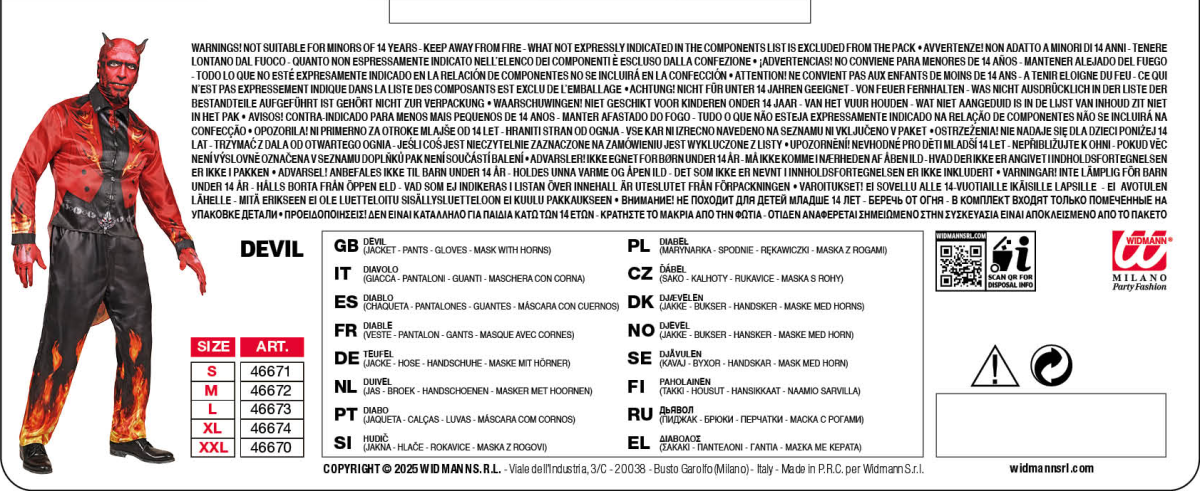 - Design infuocato: dettagli rossi, corna e motivi a forma di fiamma rendono il costume accattivante, mentre la maschera conferisce un aspetto diabolico impressionante