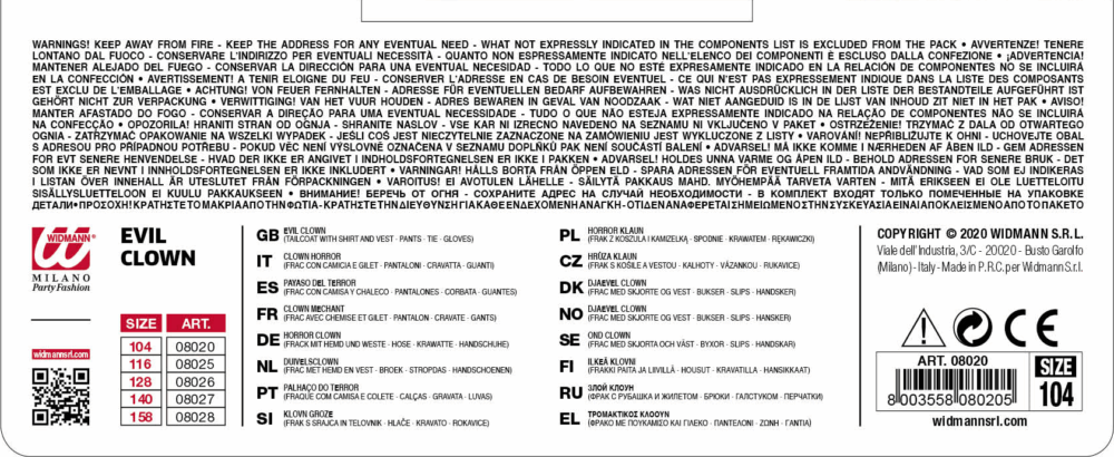 11 – 13 anni 158 H, 4 – 5 anni 116 H, 5 – 7 anni 128 H, 8 – 10 anni 140 H