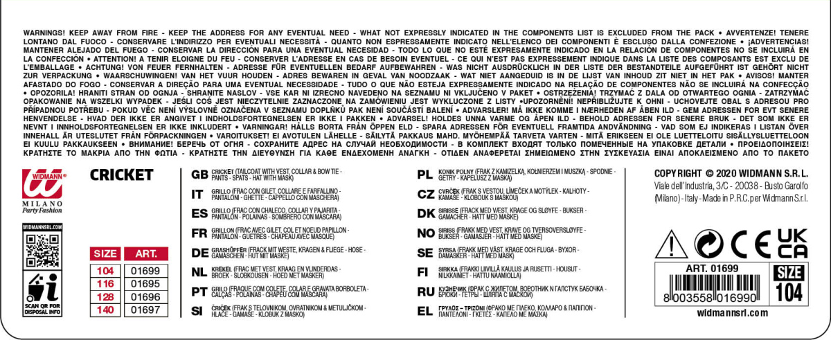 WIDMANN COSTUME grillo . La confezione comprende: frac con gilet, collare e farfallino, pantaloni, ghette, cappello con maschera. Sono esclusi gli accessori non menzionati.