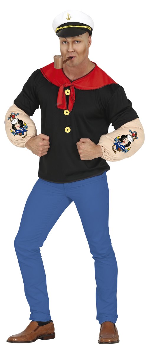 - CONTENUTO DEL COSTUME Marinaio Braccia di Ferro: Cappello, sciarpa, t-shirt, braccia