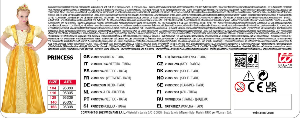- La confezione include l’abito lungo fino a terra e la tiara dorata
