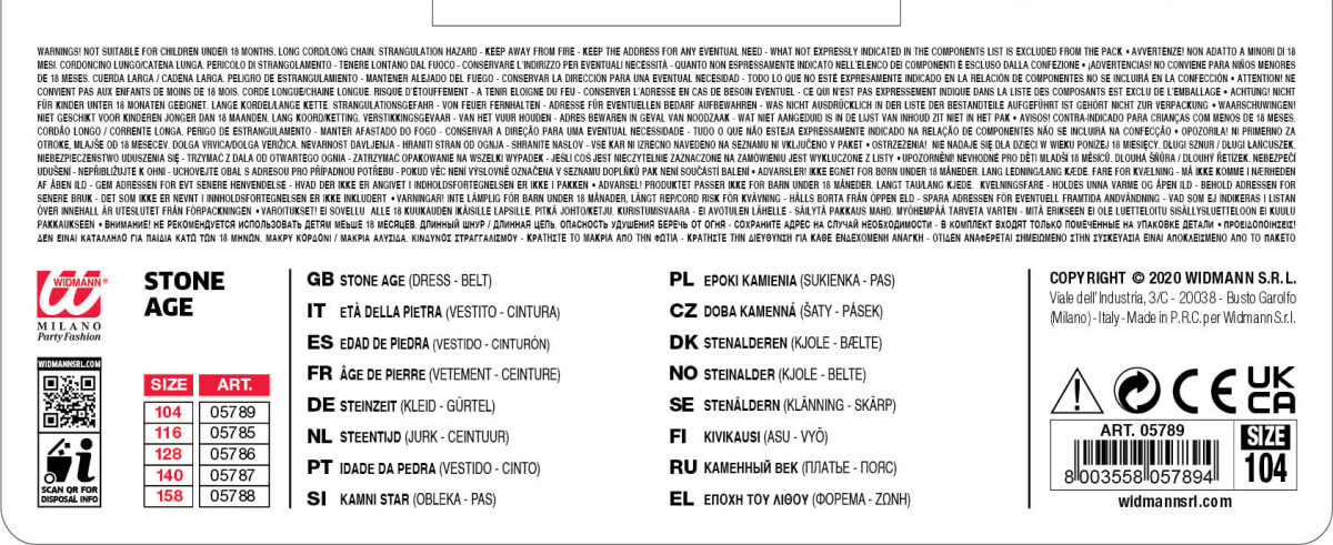 Costume da RAGAZZA DELL’ETA’ DELLA PIETRA
