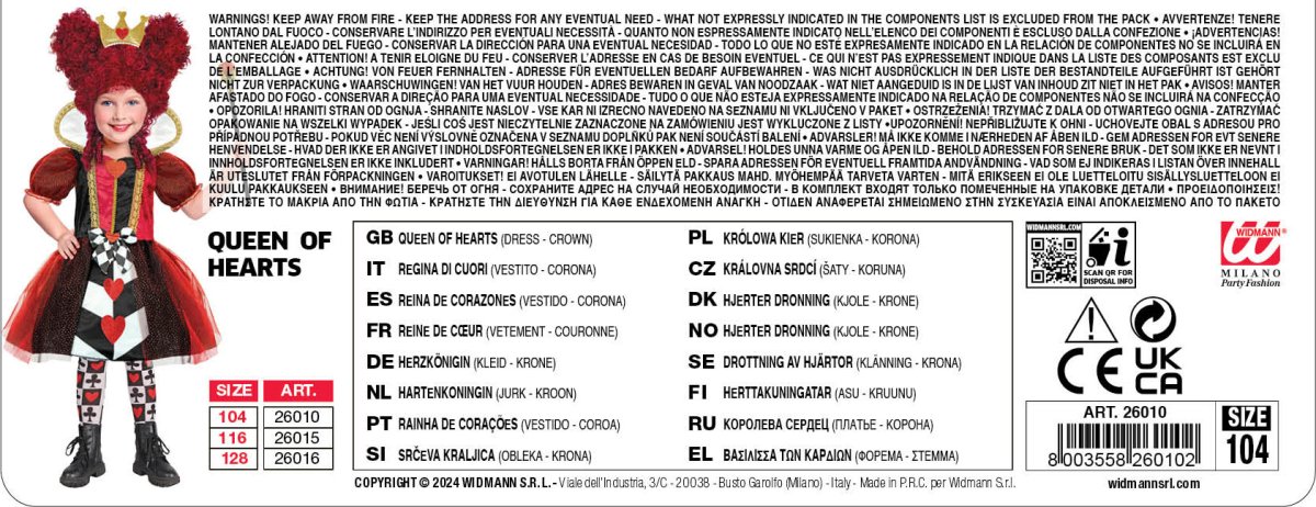 La confezione comprende: vestito, corona. Sono esclusi gli accessori non menzionati.