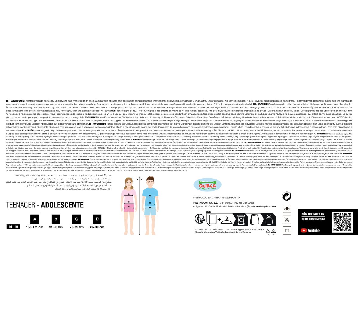 10 – 12 anni H 142 – 148 CM, 14 – 16 anni 164 H, 7 – 9 anni H 125 – 135 CM