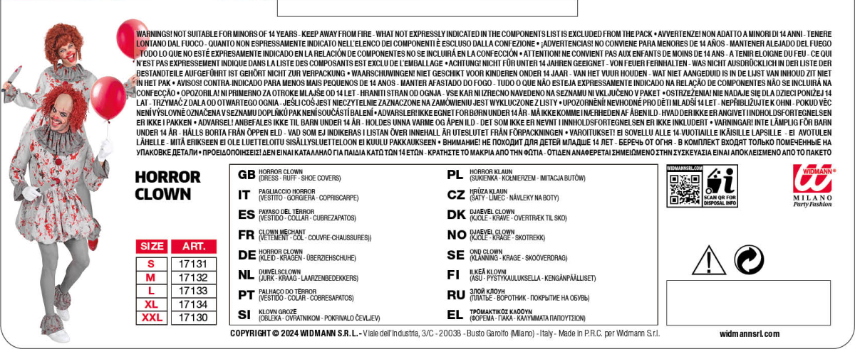 • Contenuto della confezione: abito, gorgiera e copriscarpe: tutto il necessario per un look da clown horror spaventoso