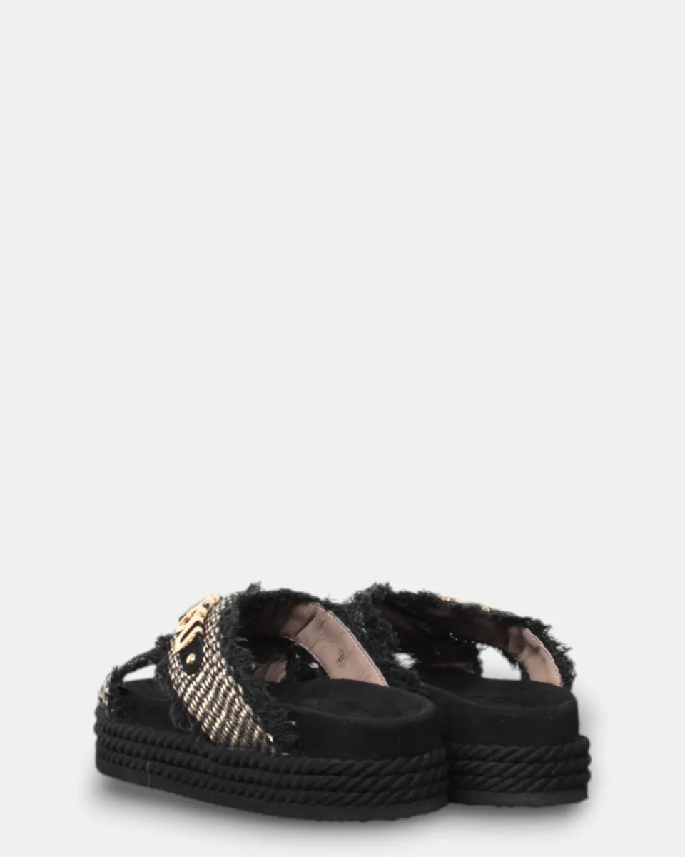 Il sandalo Criss-Cross Rope Raffia è realizzato a mano con suola in EVA avvolta in corda e plantare imbottito in microsuede. Altezza 3 cm.