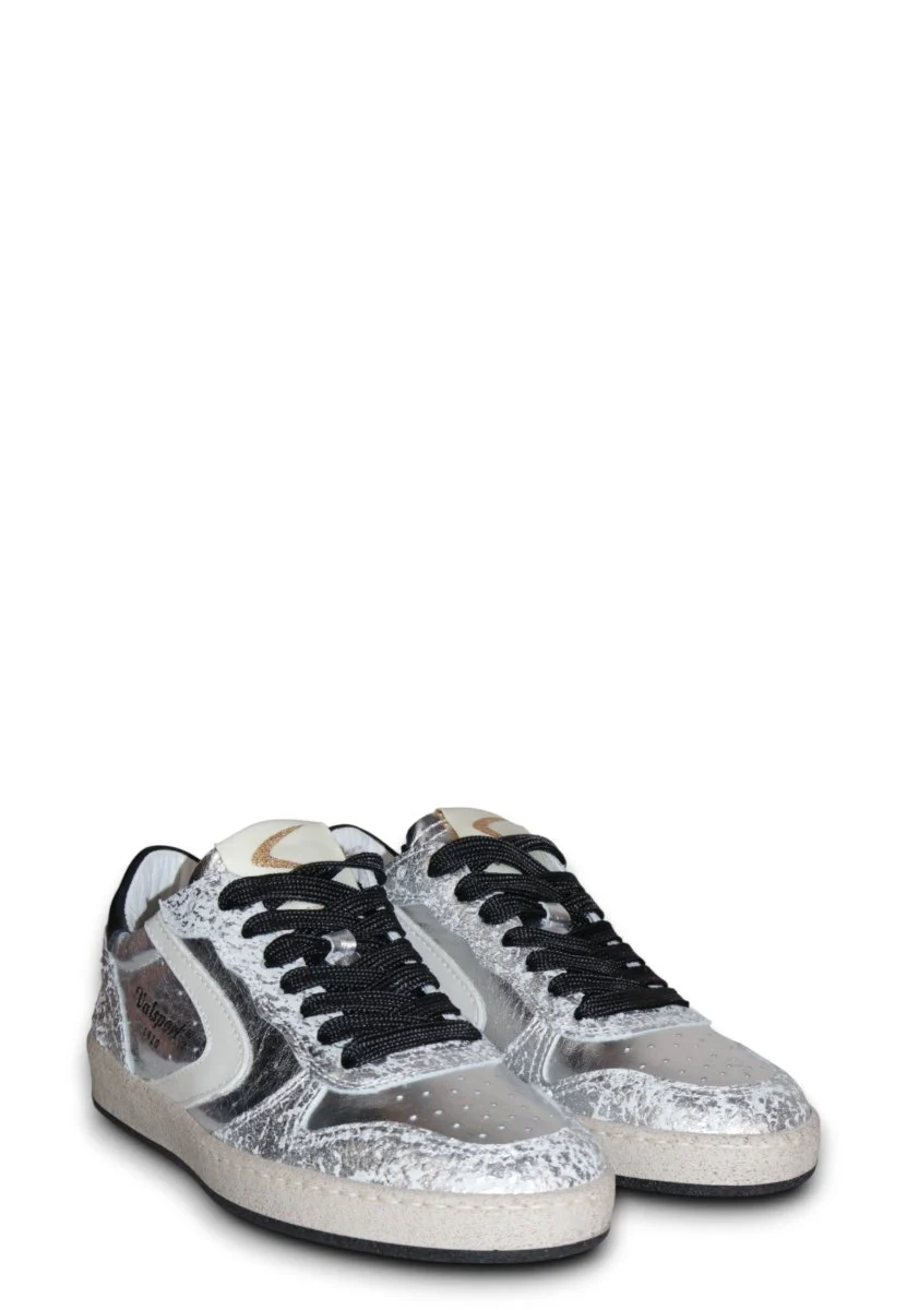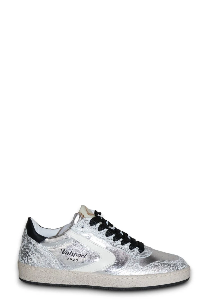 Le Sneakers Davis di Valsport incarnano perfettamente l’equilibrio tra tradizione sportiva e design contemporaneo. Realizzate in 100% pelle, queste sneakers si distinguono per l’originale combinazione di colori argento, panna e nero, che dona carattere e versatilità a ogni look.