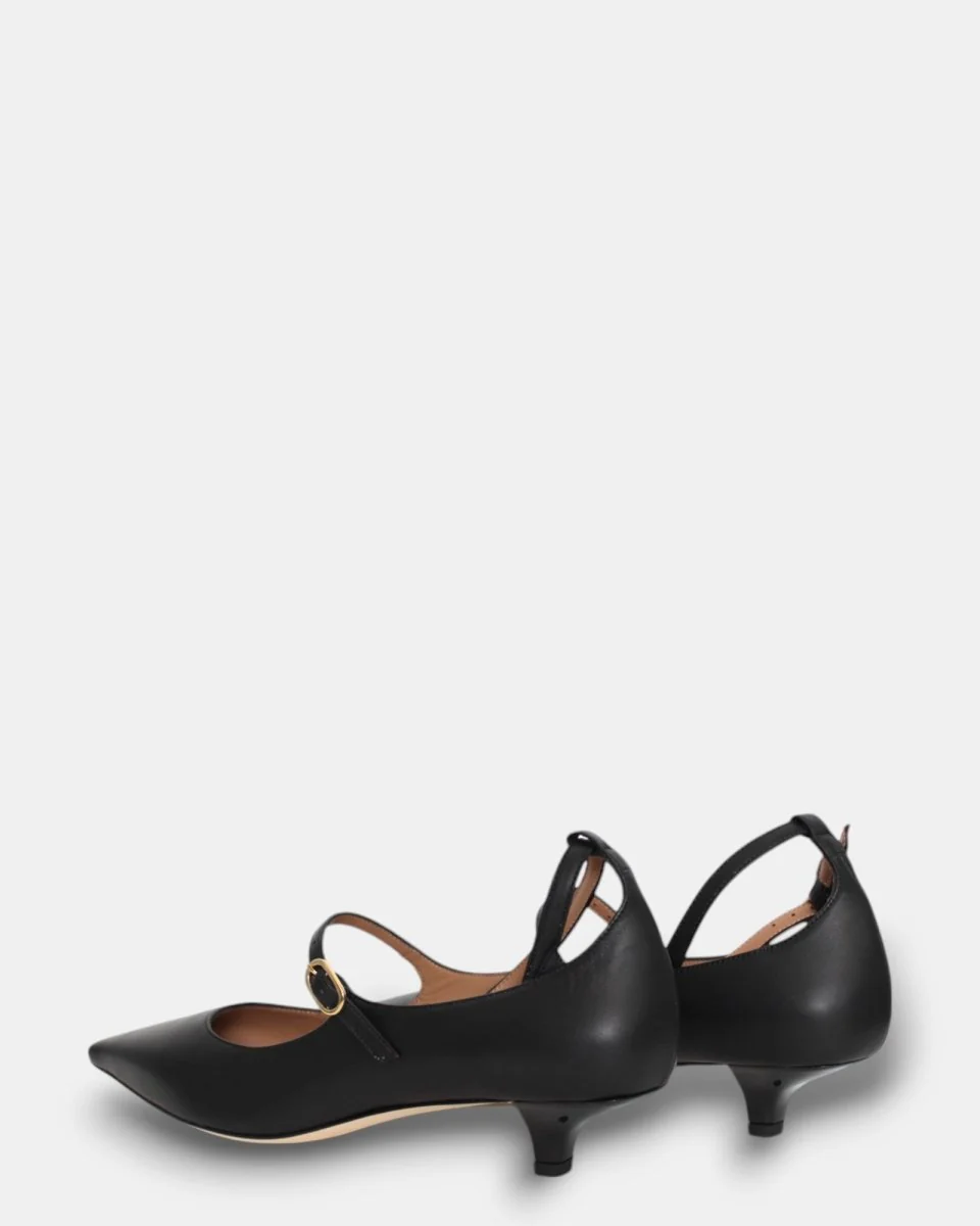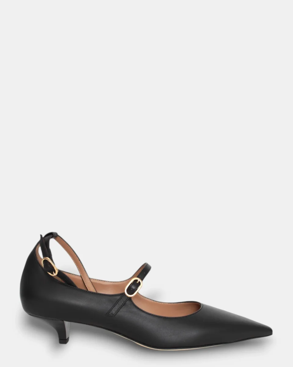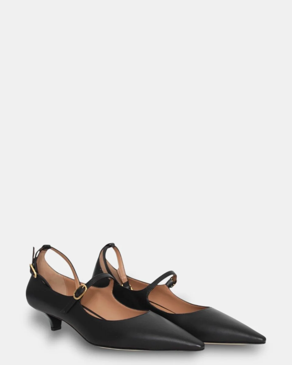 Decolettè Prosperine nero con braccialetto con fibbia dorata, e cinturino sul collo del piede in pelle, con suola antiscivolo e tacco 35 mm