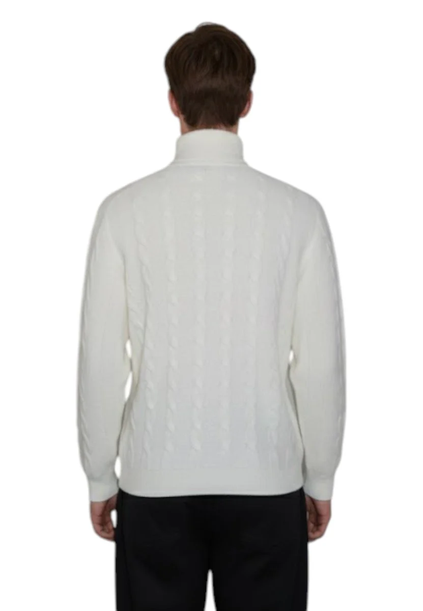Realizzato con un mix di lana e poliammide, questo maglione offre calore e resistenza, garantendo una sensazione di morbidezza sulla pelle. Il design a dolcevita aggiunge un tocco di sofisticatezza ideale per le giornate più fredde, sia in contesti formali che casual.