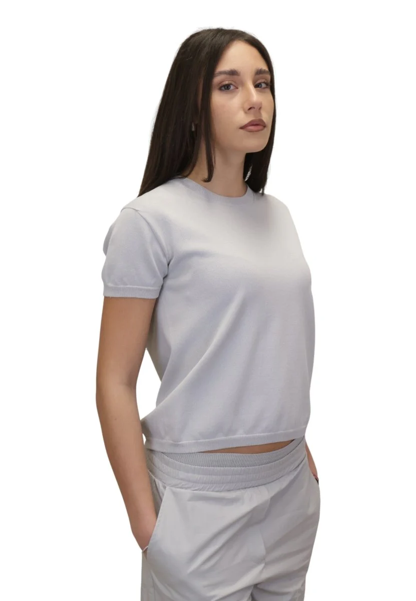 Realizzata in 65% viscosa e 35% poliammide, offre una texture morbida, leggera e piacevole sulla pelle, garantendo al tempo stesso resistenza e mantenimento della forma. La maglia girocollo in viscosa da donna assicura traspirabilità e comfort durante tutta la giornata, diventando un capo passe-partout facile da abbinare a pantaloni, gonne o blazer.