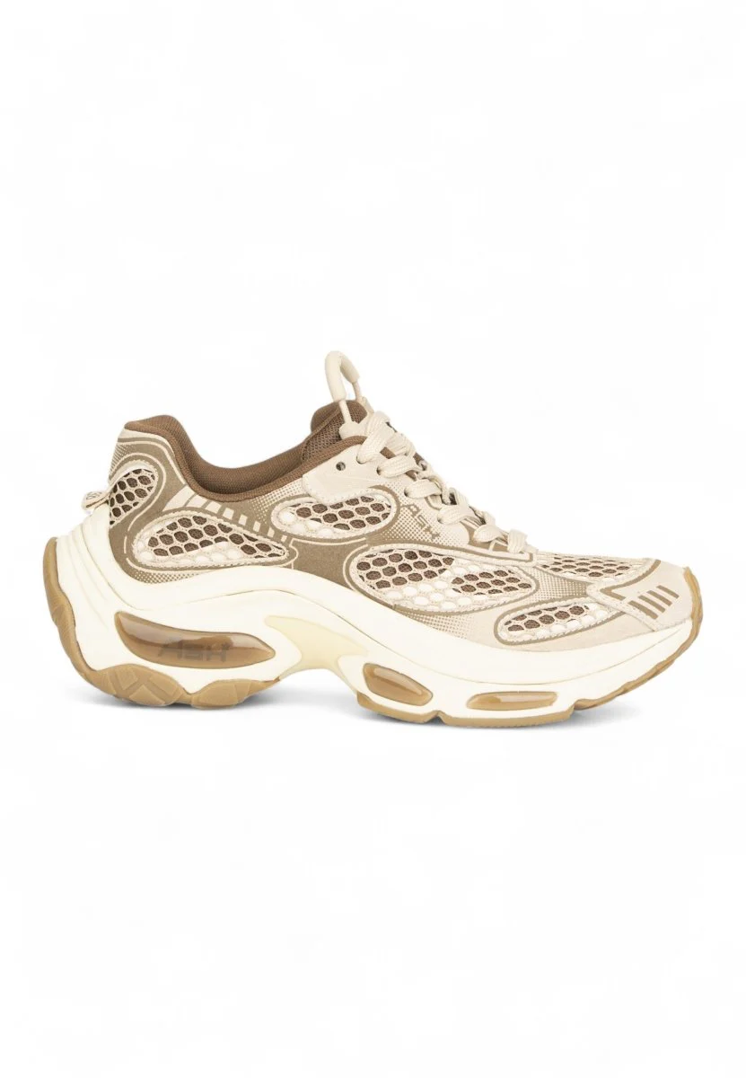 Le sneakers DRAGON di ASH uniscono spirito sportivo e design contemporaneo in un mix cromatico esclusivo Eggnug/Fandango. Realizzate con una combinazione di pelle, tessuto e materiali sintetici, offrono resistenza e leggerezza in ogni passo.