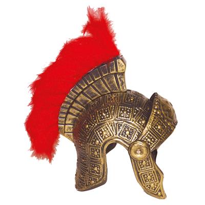 Elmo romano lavorato con piume rosse