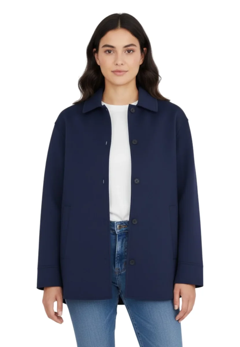 Le due tasche frontali aggiungono praticità e un tocco di carattere al design essenziale, rendendo questa giacca un capo versatile ideale per ogni occasione. Perfetta da indossare con look casual-chic, per l’ufficio o per completare outfit minimal dall’eleganza moderna.