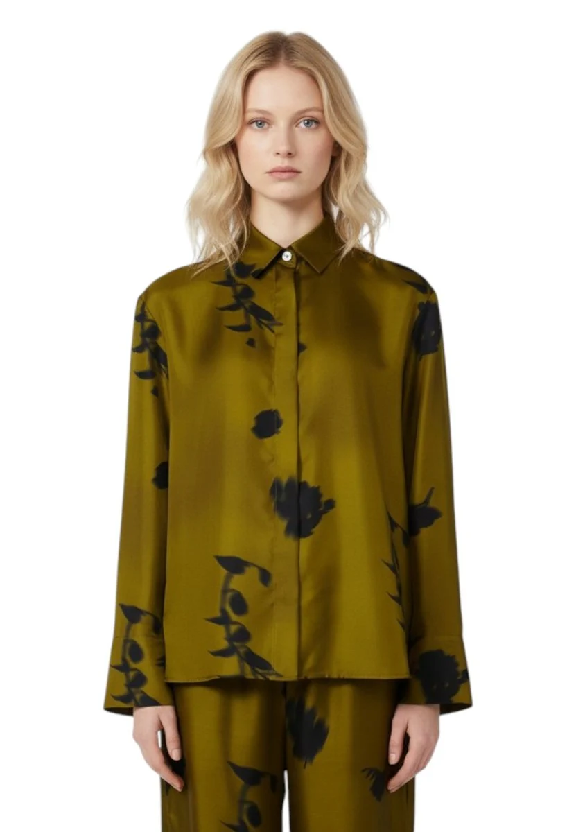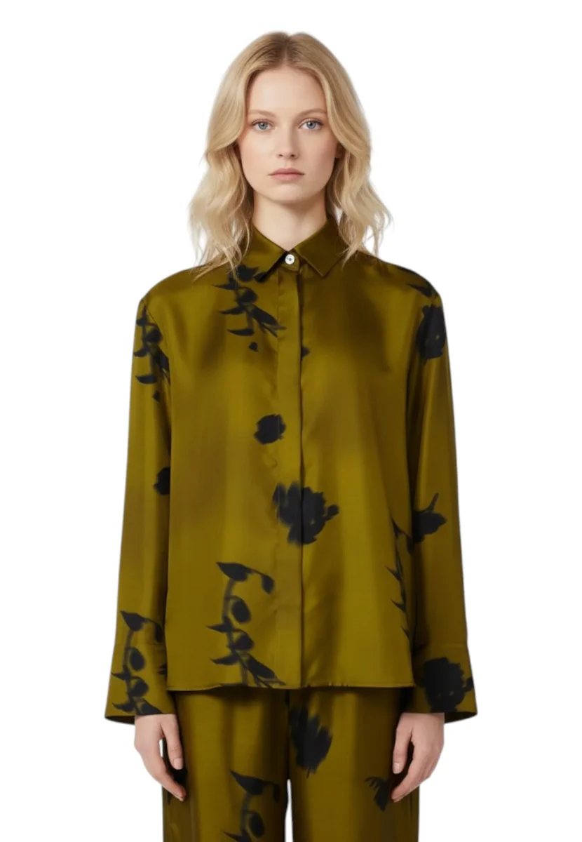 Eleganza sofisticata e qualità senza compromessi si incontrano in questa camicia da donna MM Max Mara, realizzata in pregiato twill di pura seta stampata. Il tessuto 100% seta, leggero e setoso al tatto, dona al capo una lucentezza naturale e una vestibilità impeccabile, perfetta per chi ama distinguersi con stile. Il design regolare è impreziosito da un colletto classico e maniche lunghe con polsi rifiniti da delicati spacchetti laterali, mentre la chiusura frontale nascosta conferisce un tocco minimal e raffinato. L’orlo più lungo sul retro aggiunge movimento e modernità, rendendo questa camicia in seta un capo versatile da indossare sia in contesti formali che in occasioni più casual.