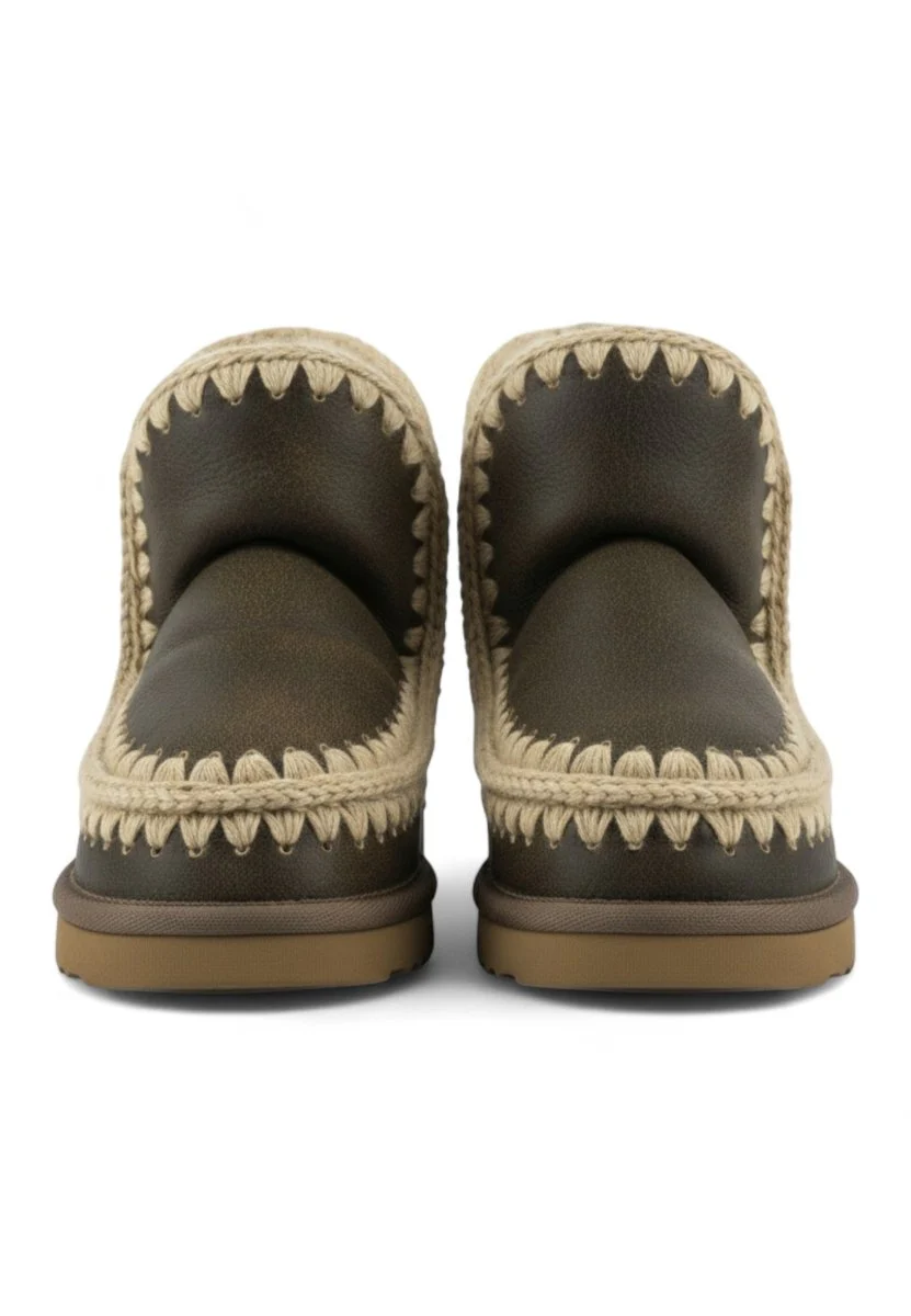 Una reinterpretazione elegante del nostro iconico modello Eskimo: l’Eskimo 18 mou si presenta in questa stagione nella sofisticata tonalità Vintage Dark Brown, con finiture artigianali in edizione limitata. Realizzato a mano con autentico montone double-face, questo stivale combina calore eccezionale e stile senza tempo. Le iconiche cuciture all’uncinetto in lana, il tallone rinforzato e la suola esterna in EVA & gomma assicurano comfort, resistenza e aderenza su ogni superficie. Un modello versatile e raffinato, ideale per affrontare l’inverno con carattere.