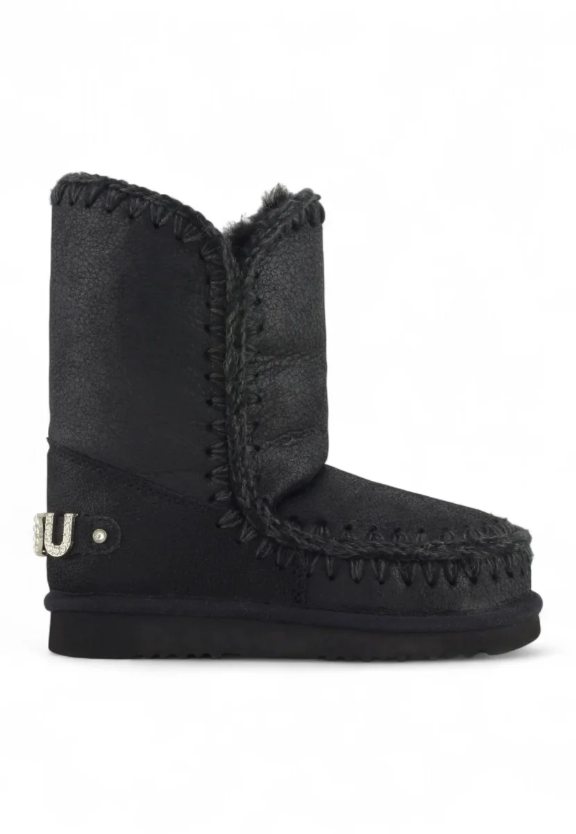 Brilla anche nei mesi più freddi con l’Eskimo 24 Rhinestones Logo CBKG di MOU, un perfetto mix di glamour, artigianalità e comfort. Questo modello iconico è realizzato in caldissimo montone double-face e rifinito con le inconfondibili cuciture in lana all’uncinetto, simbolo dello stile MOU. Il logo in strass dona un tocco luminoso e sofisticato, mentre il tallone rinforzato e la suola in EVA & gomma assicurano resistenza e stabilità. Con un’altezza di 24 cm e una silhouette accattivante, è disponibile in eleganti finiture microglitterate e metallizzate per un inverno all’insegna del lusso informale.