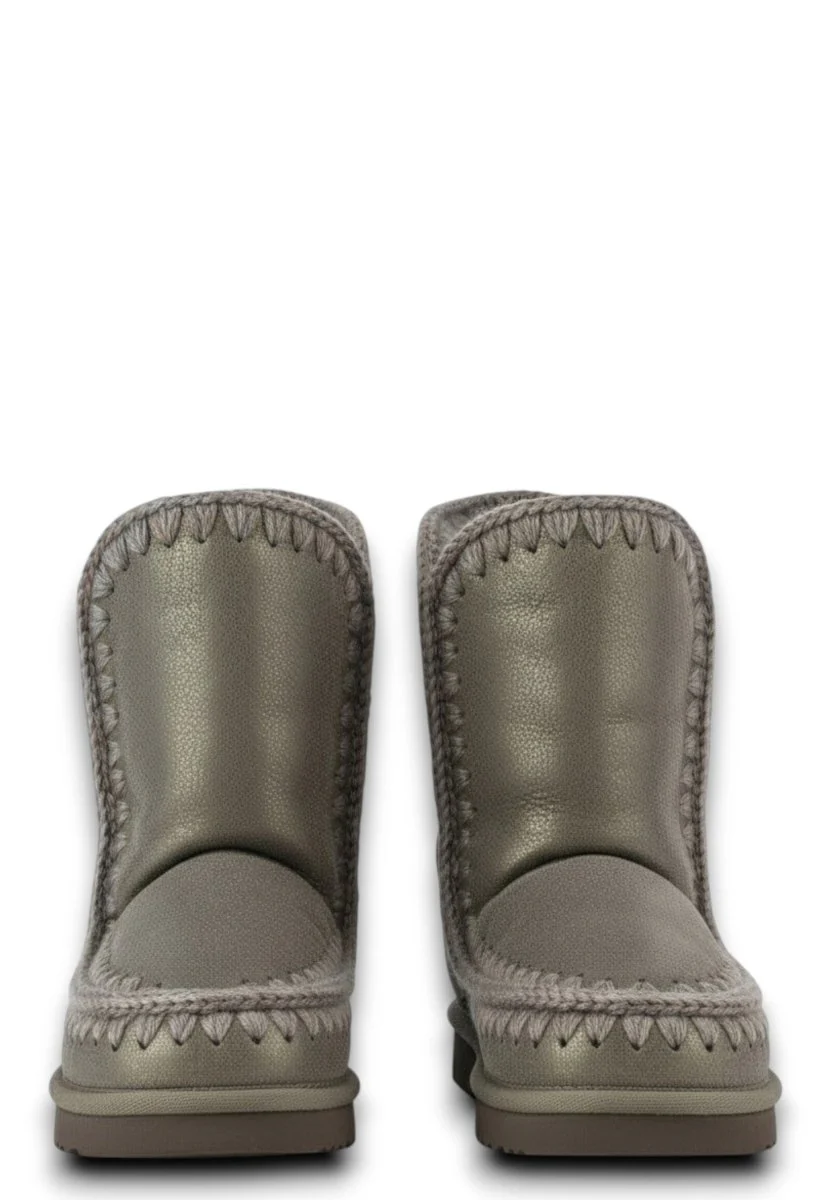 Realizzato con la rinomata cura artigianale, l’Eskimo 24 è interamente foderato in caldissimo montone double-face (shearling) per garantire un isolamento termico superiore. La tomaia è impreziosita da una finitura microglitterata e metallizzata, mentre l’elemento distintivo è il logo in strass che cattura la luce. Il design è completato dall’inconfondibile cucitura in lana all’uncinetto firmata Mou e da un tallone rinforzato. La suola esterna in EVA e gomma assicura resistenza, ammortizzazione e una calzata incredibilmente comoda. Con un’altezza di 24 cm, offre una copertura ottimale e una vestibilità regolare.