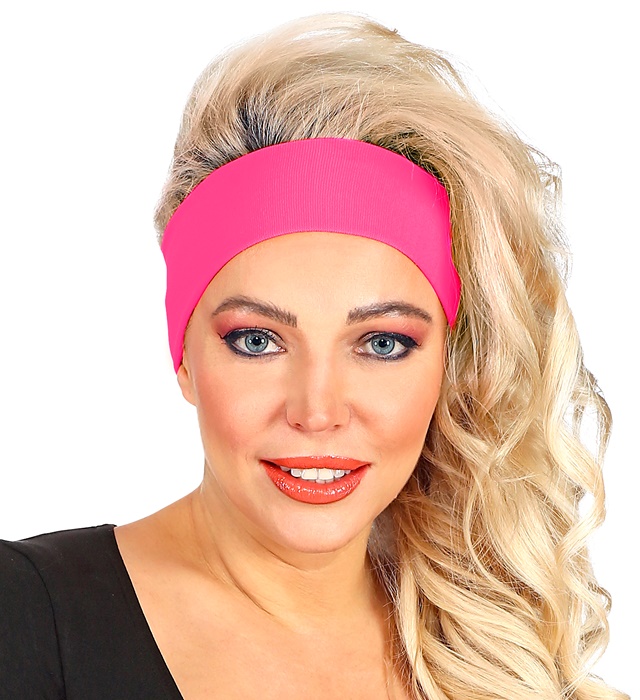 Fascia per capelli rosa look anni ’80 outfit da aerobica