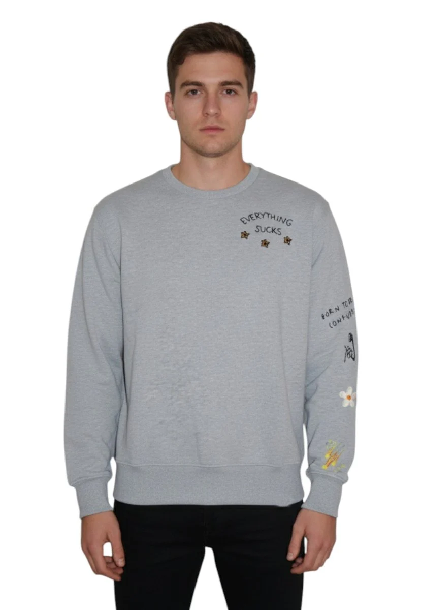 La felpa a girocollo INSPIRED BY A TRUE STORY unisce stile essenziale e personalità. Caratterizzata da una fantasia monocolore e da maniche lunghe, si distingue per la cura dei dettagli: un ricamo frontale e un ulteriore ricamo sulla manica sinistra aggiungono un tocco distintivo al design pulito.