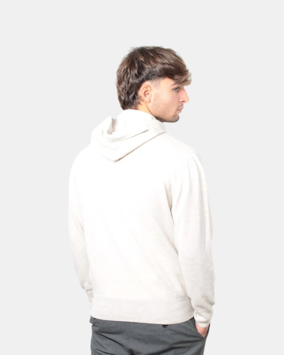 La felpa con cappuccio in maglia Altea dalla mano morbida è data dalla sua composizione in 100% lana vergine.