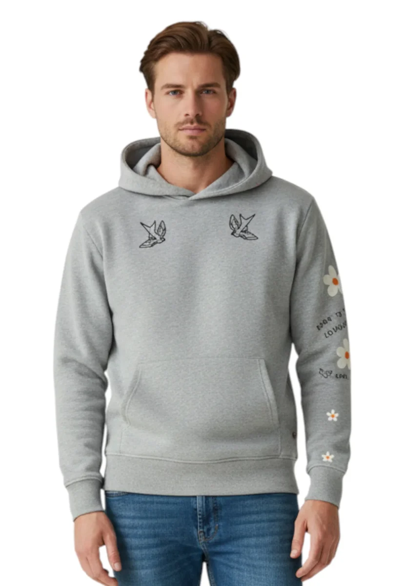 La felpa con cappuccio del brand INSPIRED BY A TRUE STORY presenta una fantasia monocolore e maniche lunghe. Dettagliata con un ricamo frontale e sulla manica sinistra, è dotata di una tasca a marsupio con due aperture laterali. Realizzata in 100% cotone. Si consiglia il lavaggio a una temperatura massima di 30 gradi.