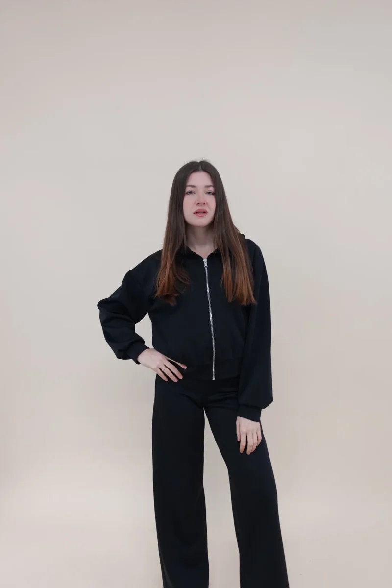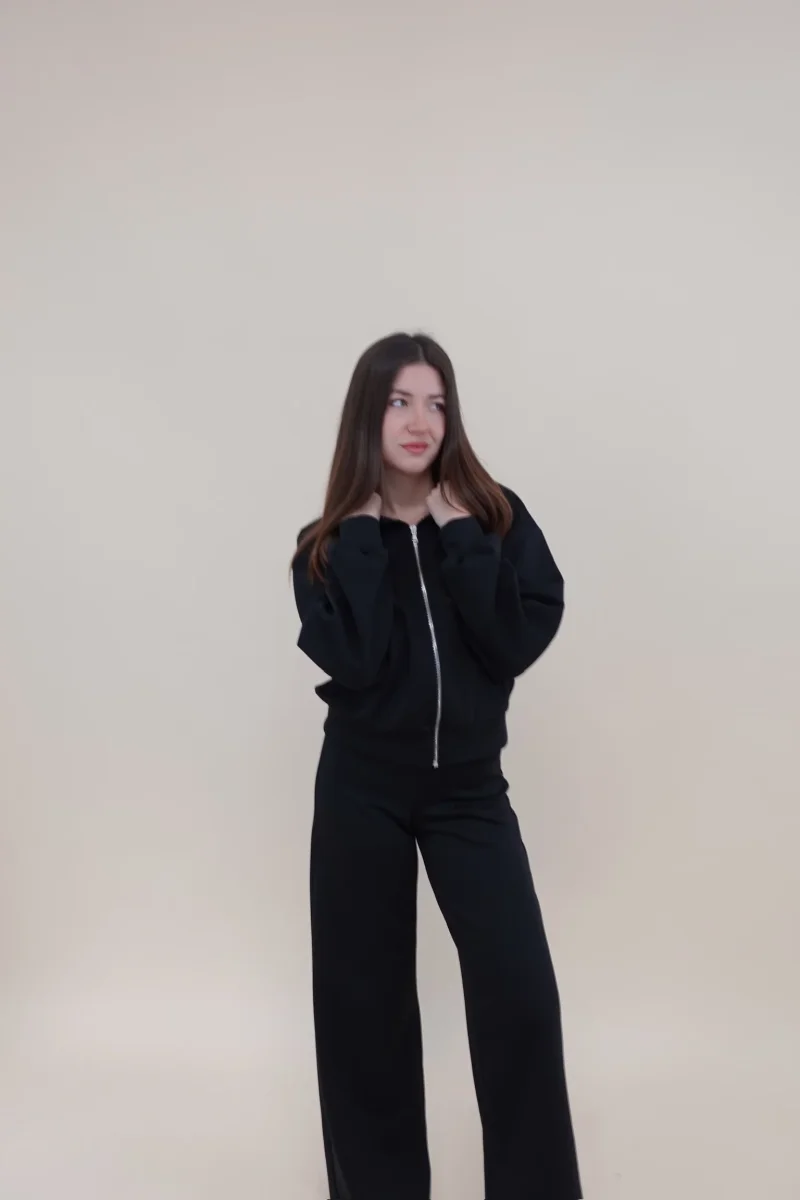 Felpa con zip, cappuccio e tasche